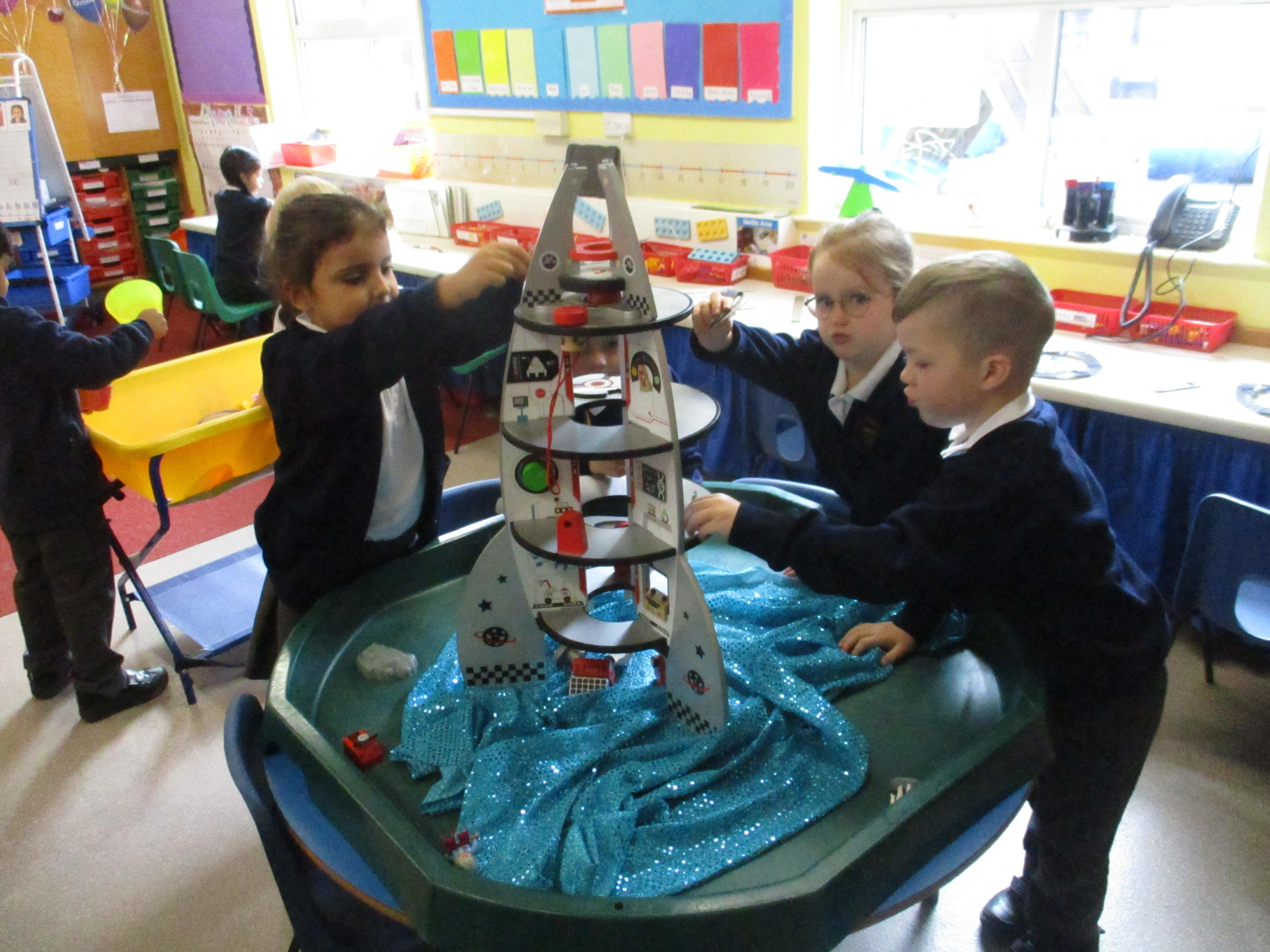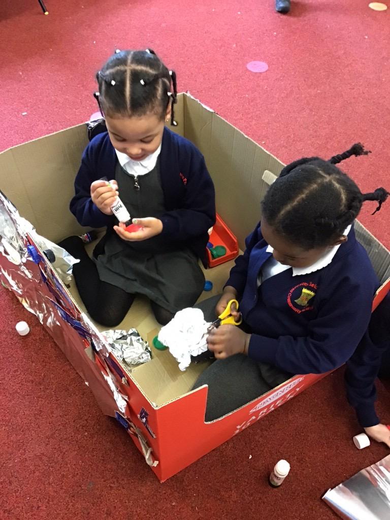 This week is Science week. We have made rockets out of ‘rubbish’ and worked as a team to turn boxes into spaceships.