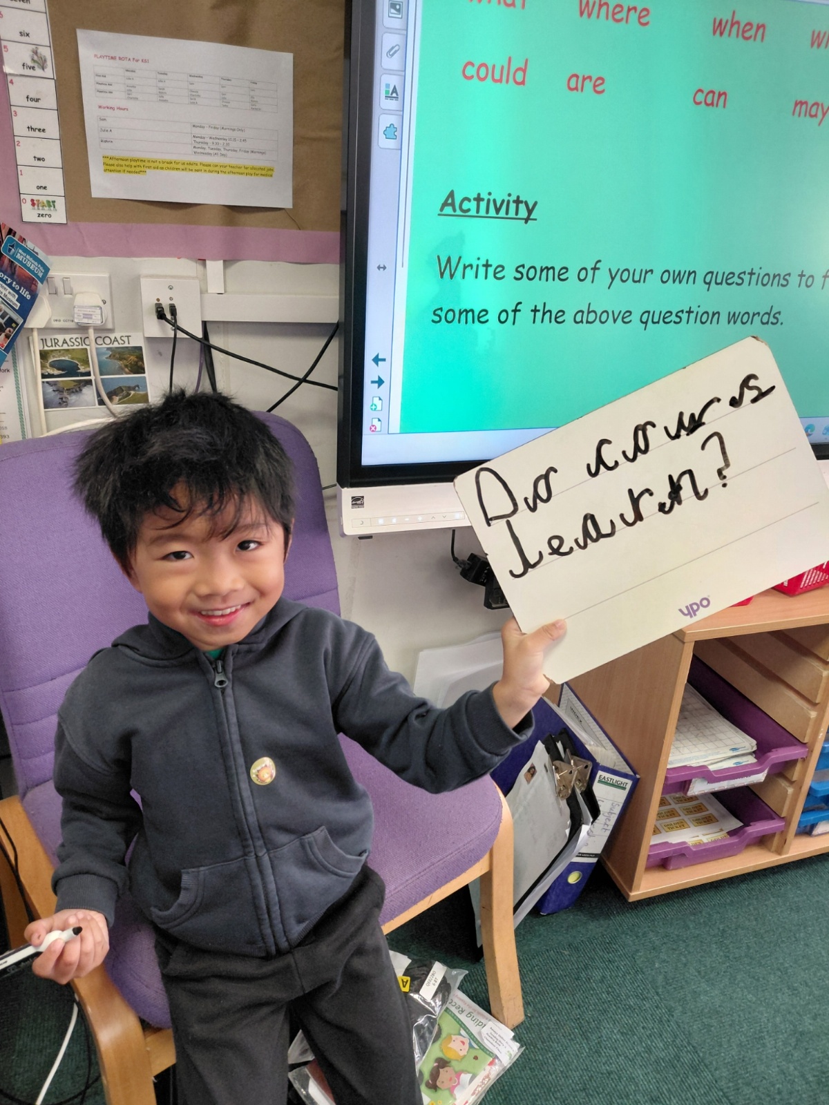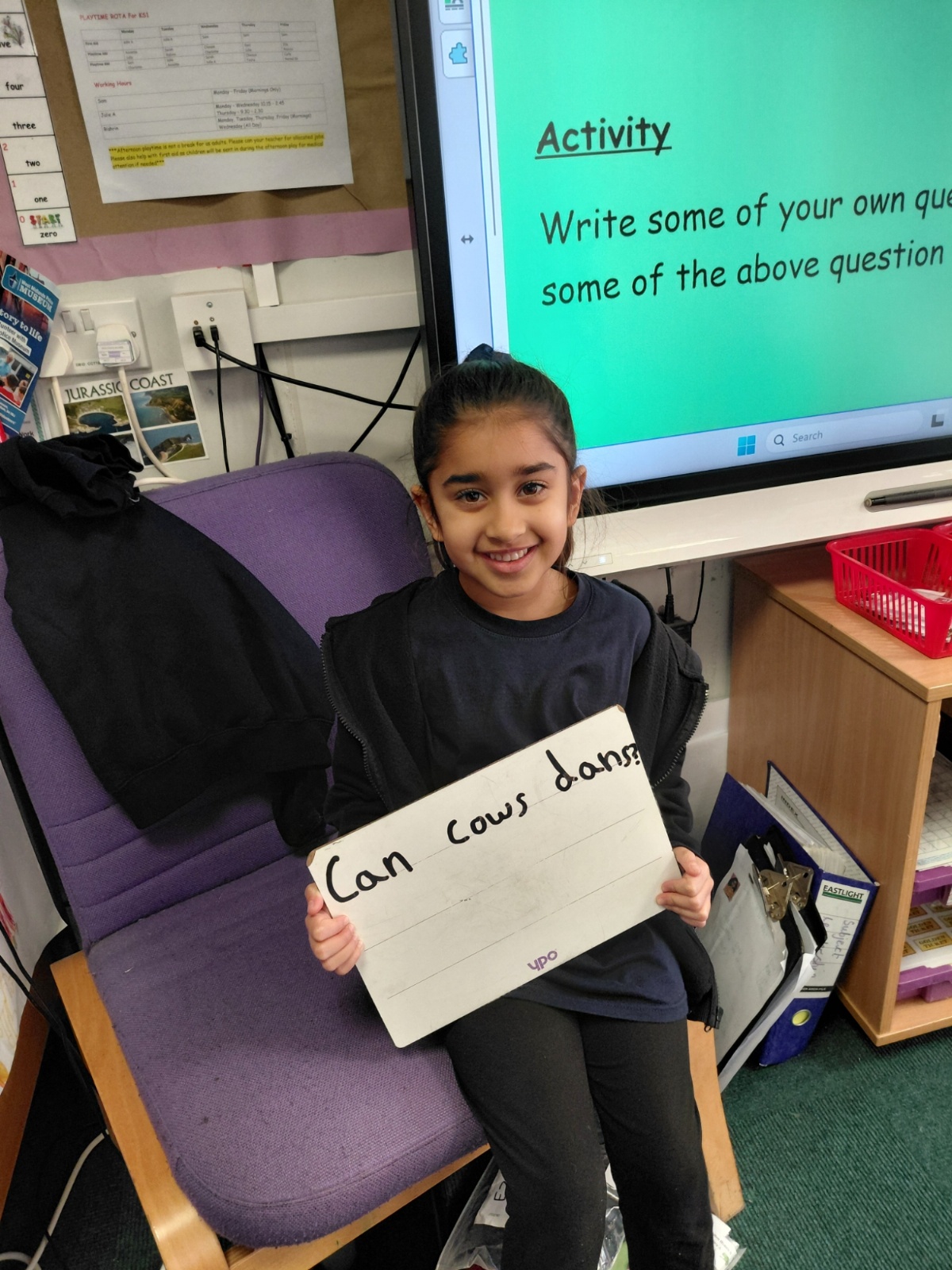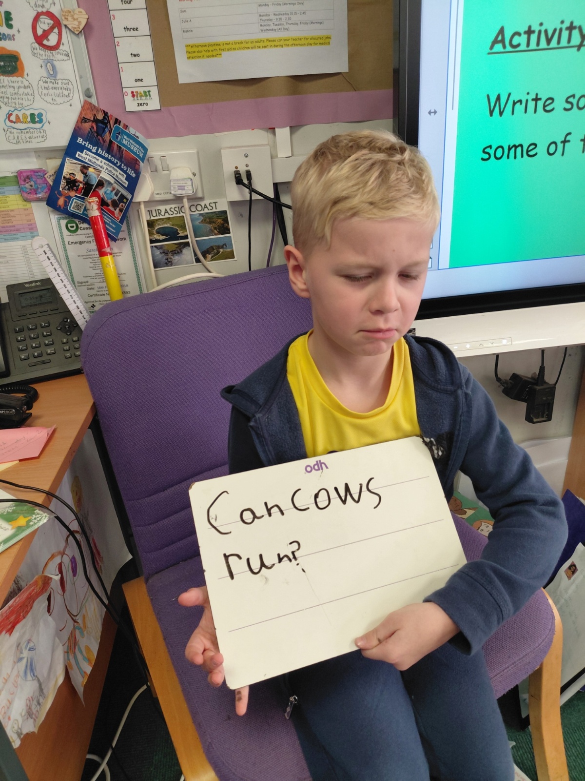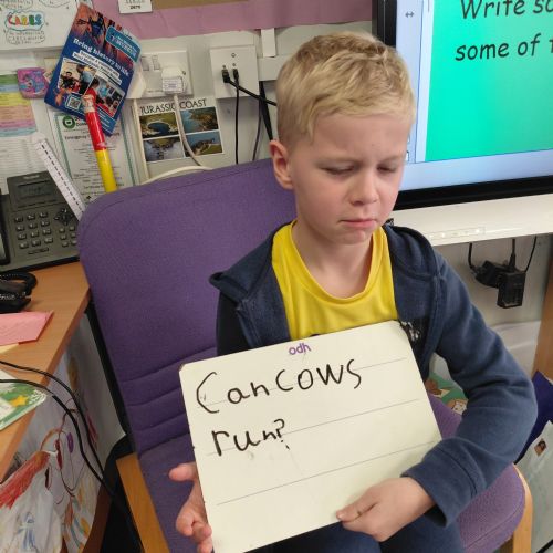 Today we have been learning how to write questions. First the cow and the farmer had a phone conversation about those electric blankets....