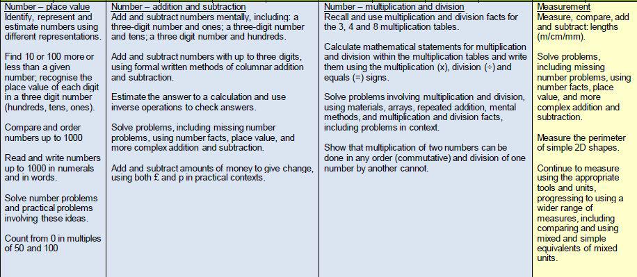 This Term ... We are learning fractions, time, geometry, mass and capacity. Over the year you will need to learn your times tables, so you can answer quickly, without having to count on your fingers! You should know 2,5, 10, 3, 4 and 8 times tables. You should also be able to work out the division facts for these times tables. |