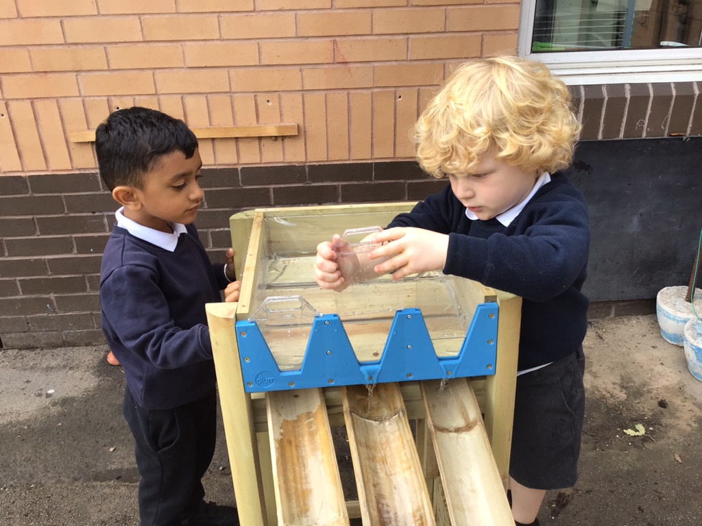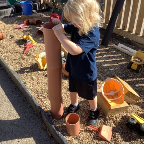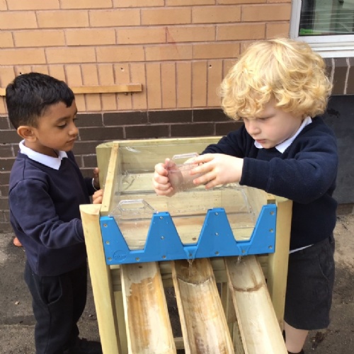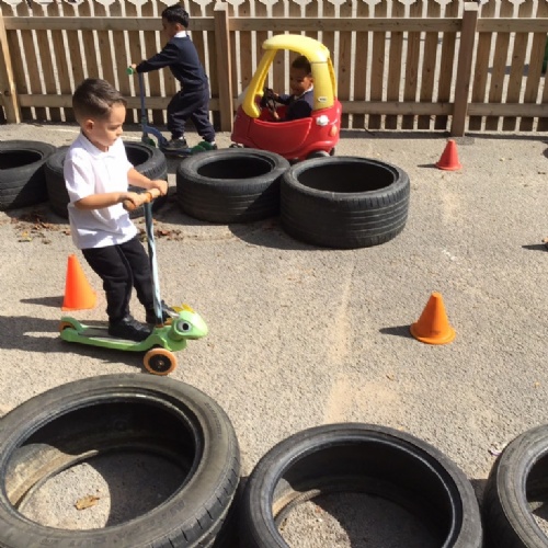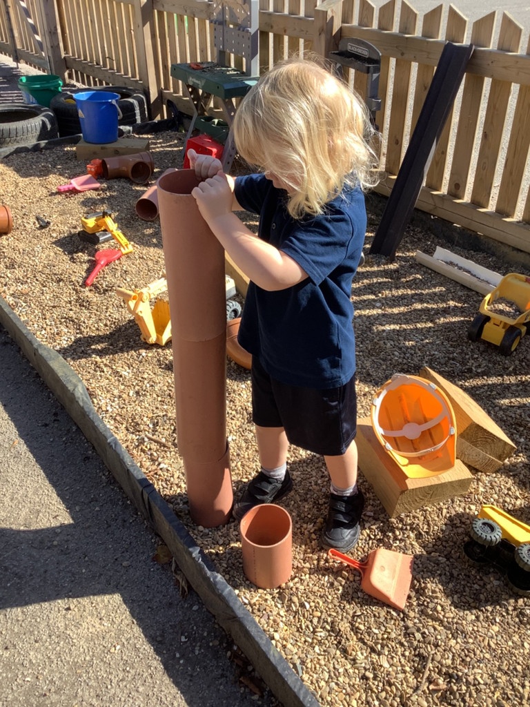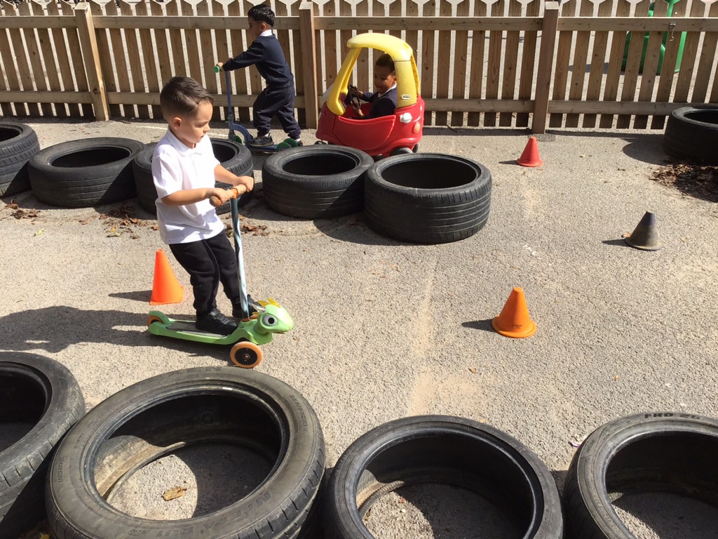 The children have access to our outdoor area all year round. This is a space where they can enjoy activities that they may not be able to do inside such as digging, den building and bike riding. We also use other spaces around school such as the sensroy garden, field and huge sandpit.